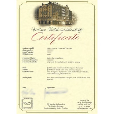 This watch comes with authenticity papers, confirming its details.